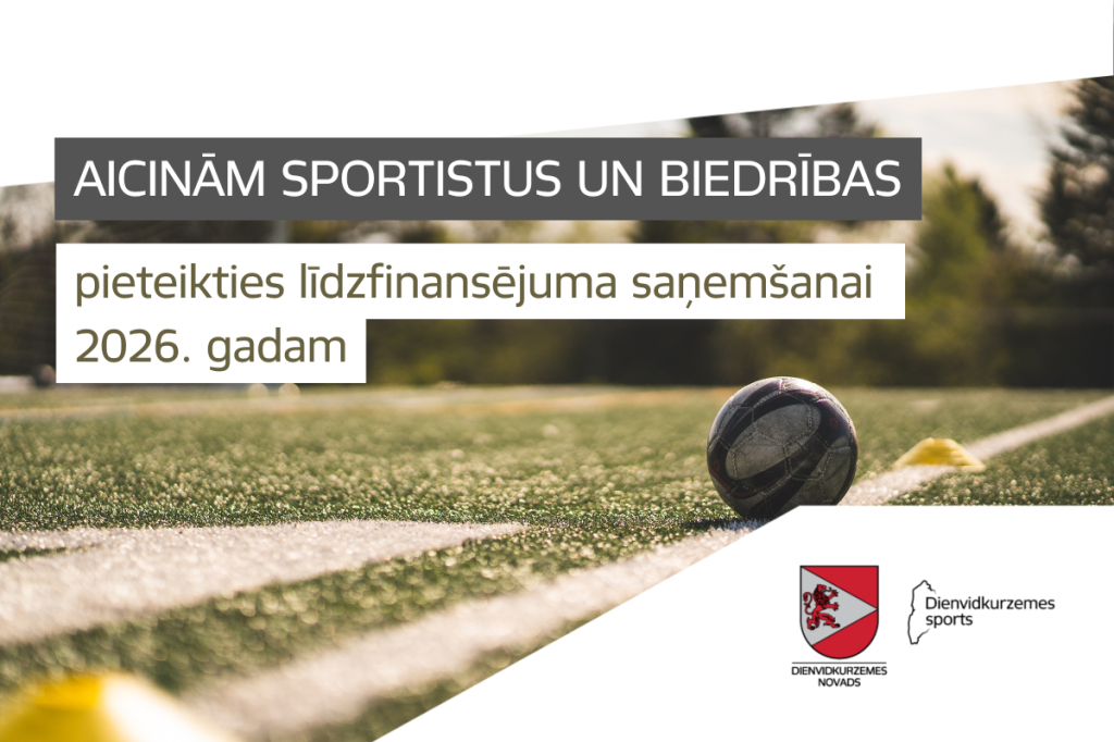 Pamatojoties uz Dienvidkurzemes novada pašvaldības saistošajiem noteikumiem “Par finansiālu atbalstu sportam Dienvidkurzemes pašvaldībā”, Dienvidkurzemes novada pašvaldība aicina biedrības, sporta organizācijas un citus organizatorus iesniegt pieteikumus finansiāla atbalsta saņemšanai sporta organizāciju darbības nodrošināšanai un sporta sacensību organizēšanai, t.sk. sportistu un treneru dalībai sporta sacensībās un treniņnometnēs.