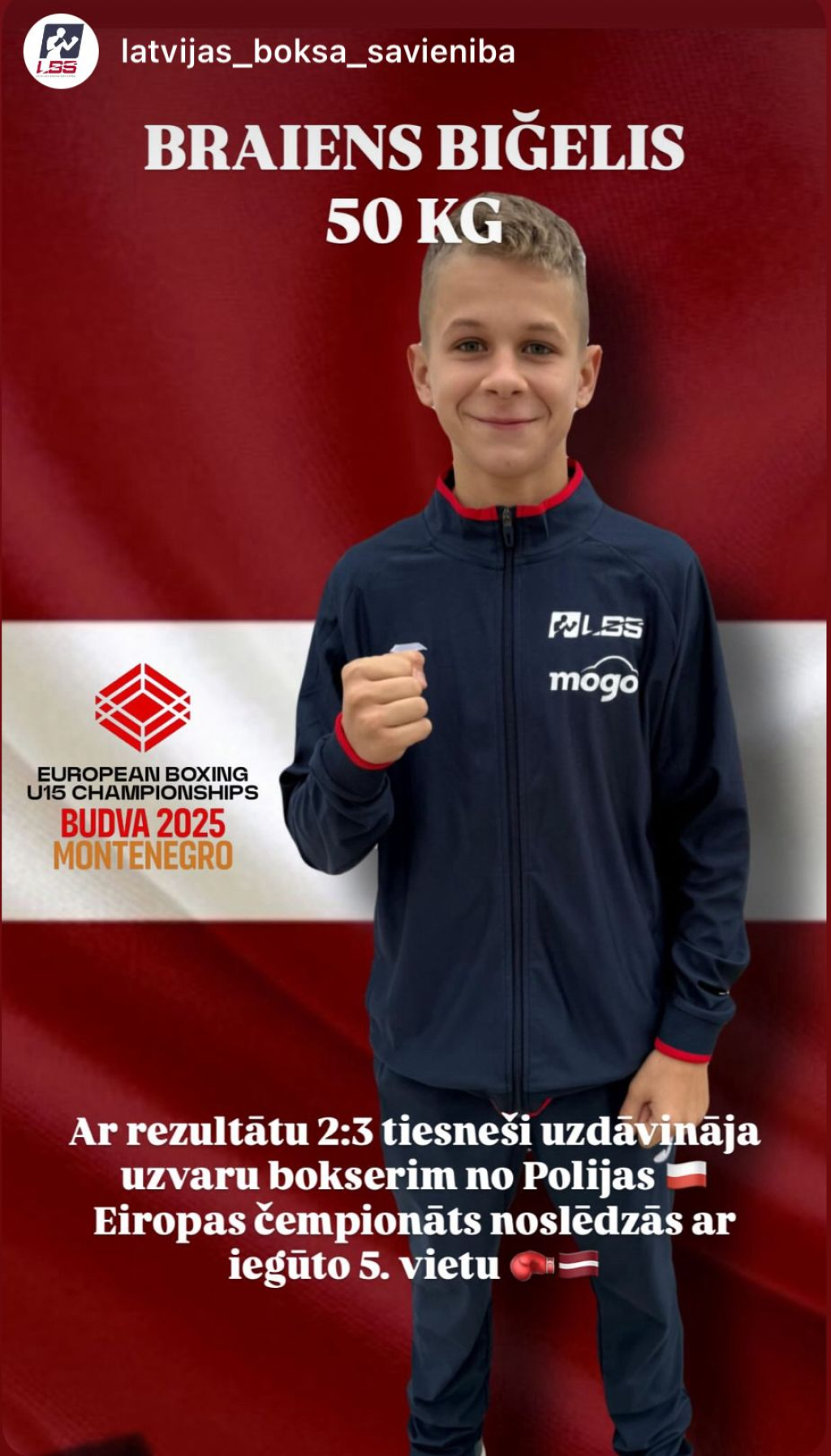 Grobiņas bokseris Braiens Biģelis izcīna 5. vietu Eiropas U15 čempionātā Melnkalnē