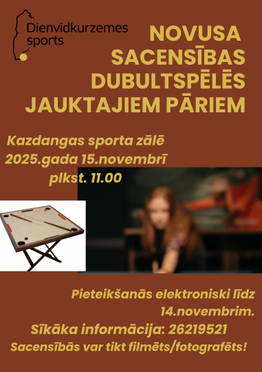 Sestdien, 15. novembrī Kazdangas sporta zālē notiks novusa sacensības dubultspēlēs jauktajiem pāriem.