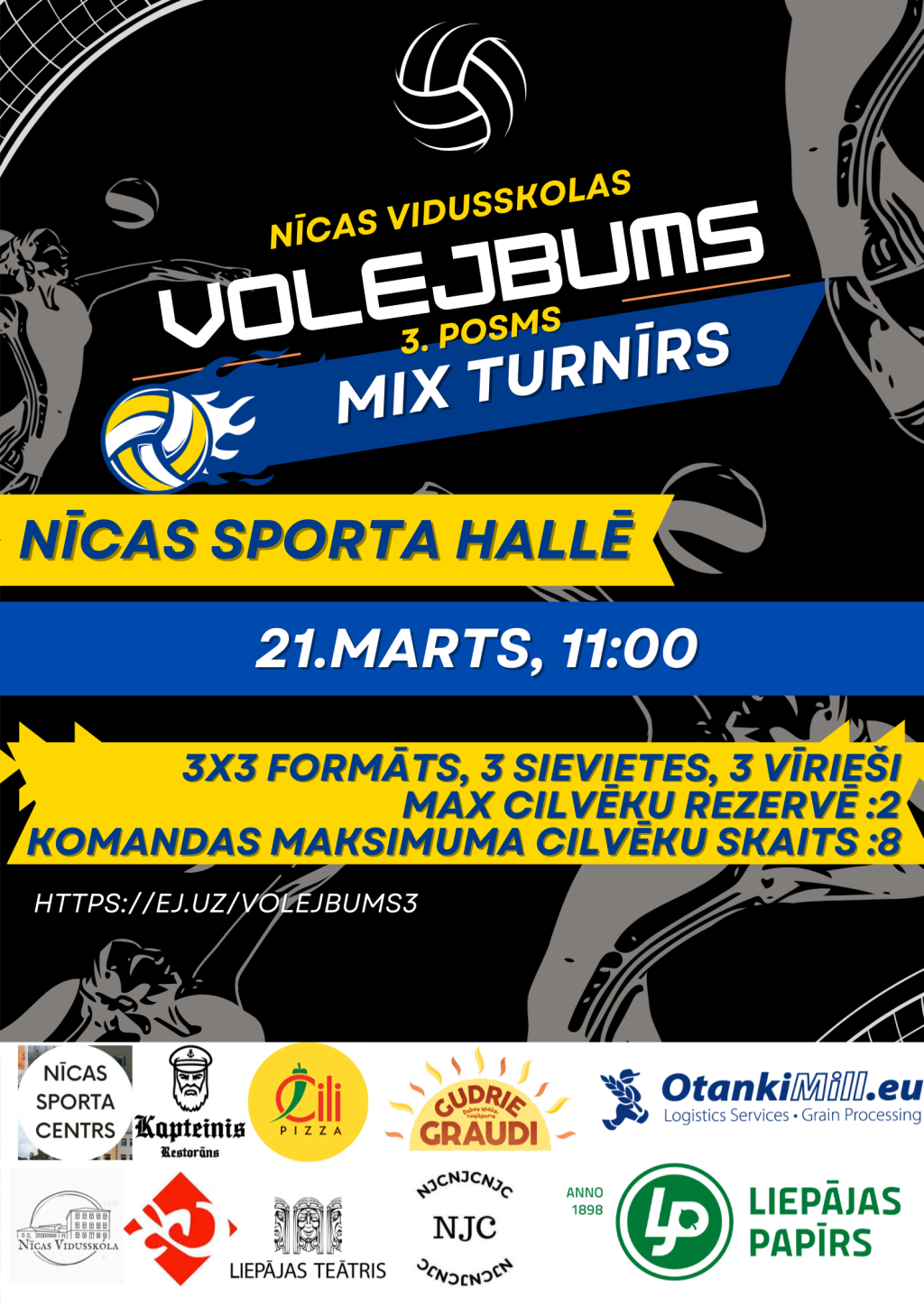 Pēc 4 mēnešu pauzes volejbola MIX turnīrs “Volejbums” atkal pulcēs spēlētājus un līdzjutējus Nīcas sporta hallē.