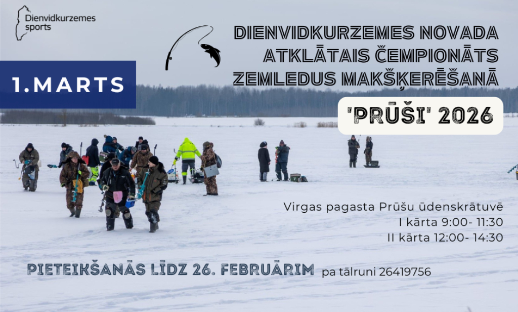 Jau sestdien, 1. martā, Prūšu ūdenskrātuvē norisināsies šī gada noslēdzošais Dienvidkurzemes novada atklātais čempionāts zemledus makšķerēšanā “PRŪŠI 2026”.