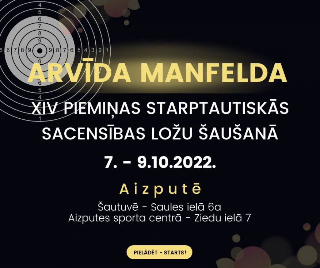 Jau pavisam drīz, no 7. līdz 9 oktobrim, Aizputē norisināsies Arvīda Manfelda XIV piemiņas sacensības ložu šaušanā!